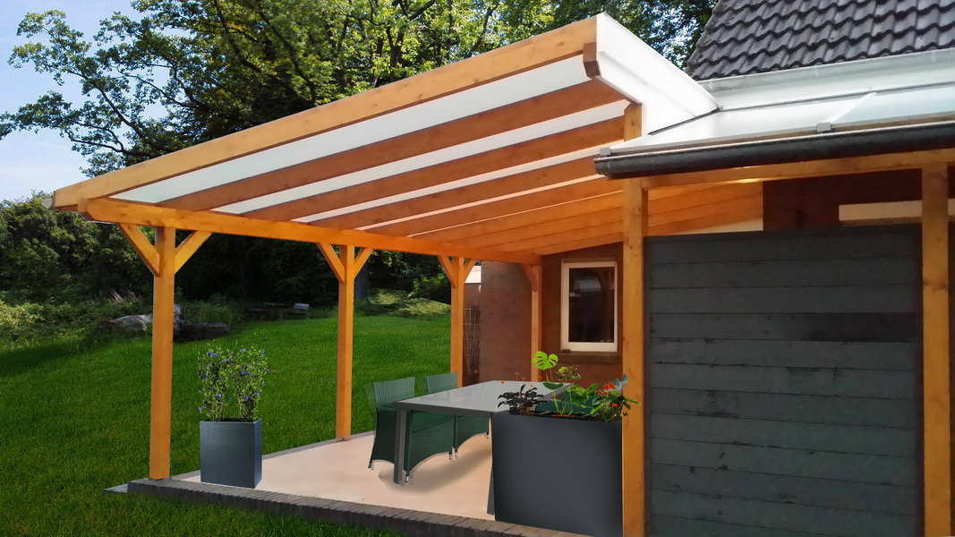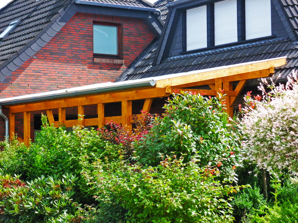 Holz Terrassenüberdachungen bieten eine rustikale und gemütliche Atmosphäre dank dem natürlichen Baustoff Holz.